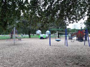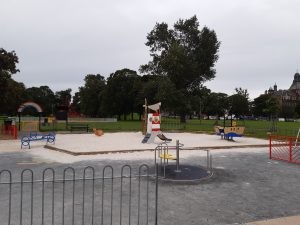 Good range of equipment incl. climbing frames, slides, sand pits, see-saws
