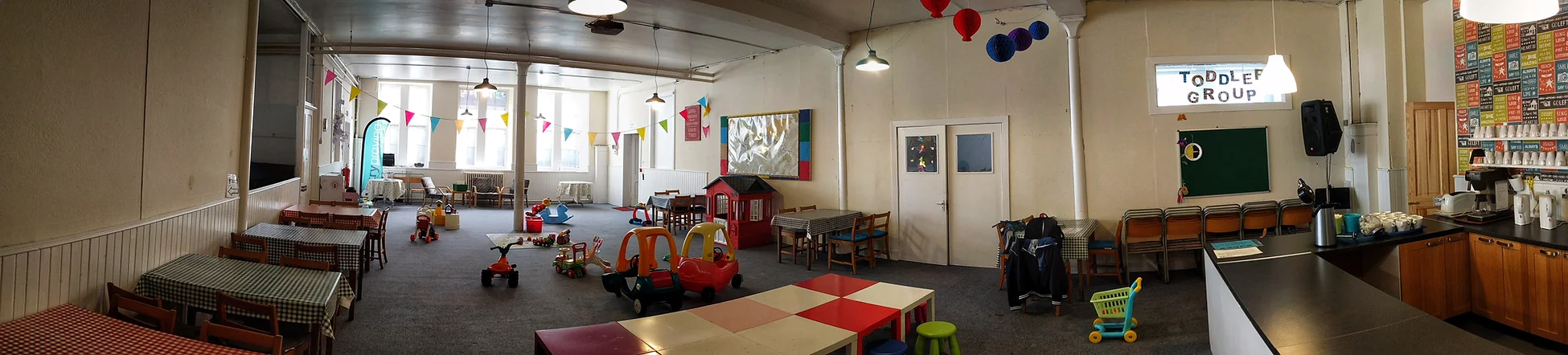Ideal for toddlers. Can get busy though & warm in winter! Really friendly. Lots of toys and play opportunities. Coffee, tea, biscuits. Singing at the end. You’ll meet other parents! Drop-ins fine. No need to book.